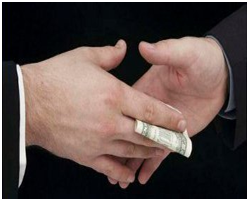 BRIBERYBribery means giving money to someone through whom a person takes something which he / she has no right to. For example: bribing a judge to get verdict in favour (wrongfully), or bribing an official to give him preference over others or to get other favours like allotment of a contract etc.