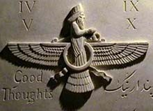 IntroductionGod in Zoroastrianism is known as ‘Ahura Mazda’. ‘Ahura’ means ‘the Lord’ or 'The Master' and ‘Mazda’ means ‘the Wise’; hence ‘Ahura Mazda’ means ‘the Wise Lord’ or ‘the Wise God’. Ahura Mazda stands for God, in a strictly monotheistic sense. The word ‘KHUDA’ is the Persian word used for calling their god ie, Ahura Mazda.